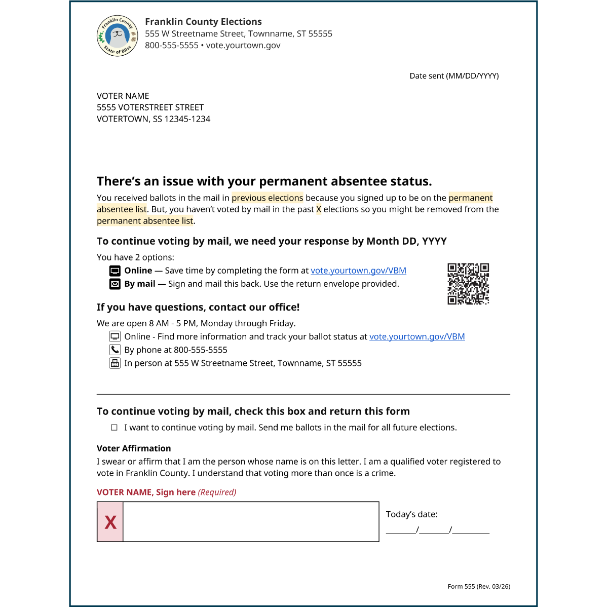 Download template (.docx)If the voter must respond to receive a ballot or stay on the list, use this version.